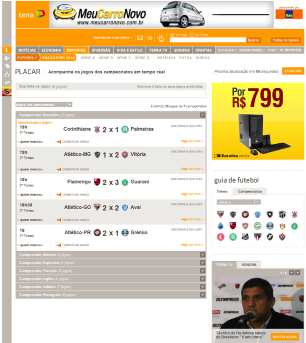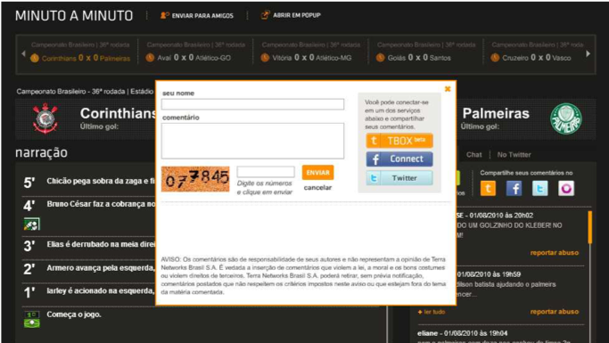 The research project aimed to investigate the perception of users regarding ease of use, speed of access to the contents and new features proposed in the prototype of Esporte Terra. All participants performed pre-established tasks and behaviours, criticisms and suggestions were raised in relation to each of the tasks studied.